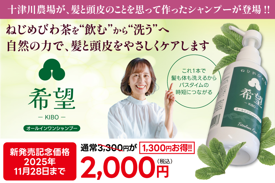 お客様からの問い合わせに。「からだによさそうだけど、飲みにくくはないですか?」というお声があります。『ねじめびわ茶』は、お子さんからご高齢の方までが家族でガブガブ飲める味と価格を考えて作られました。そして、編み出された独自の特許製法で、クセがなく、毎日飲みたくなる味と香りを実現しています。まずは1カ月。ぜひ、お試しください。